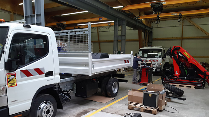Le Centre de Montage PALFINGER reçoit une commande d'assemblage de l'équipement sur le châssis concerné. Il n'a pas de lien avec le client final mais avec le donneur d'ordre seulement. L'assemblage nécessite des pièces de carrossage qui seront commandées et parfois adaptées par PCM07 mais l’essentiel des équipements est livré peint et en partie prêt à être monté sans nécessiter de soudure importante ou de fabrication de structures mécano soudées.